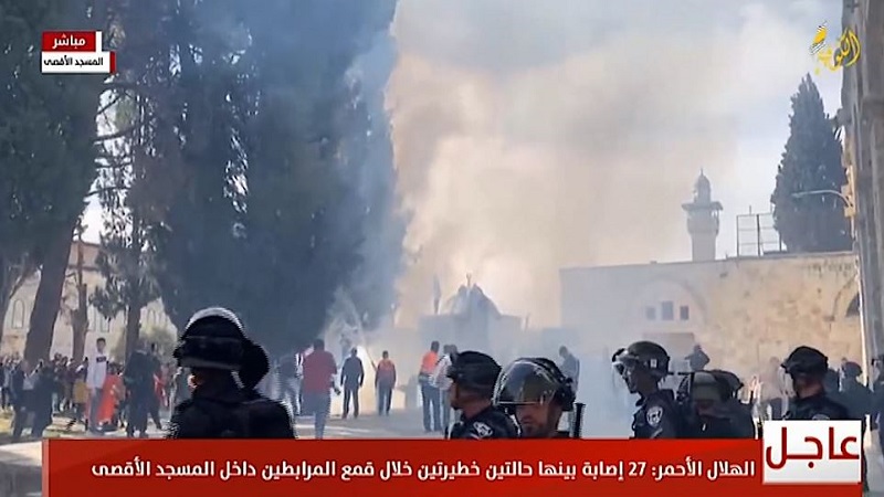 وأشارت، إلى أن قوات الاحتلال اعتدت على النساء المرابطات والأطفال وكبار السن في باحات المسجد الأقصى.