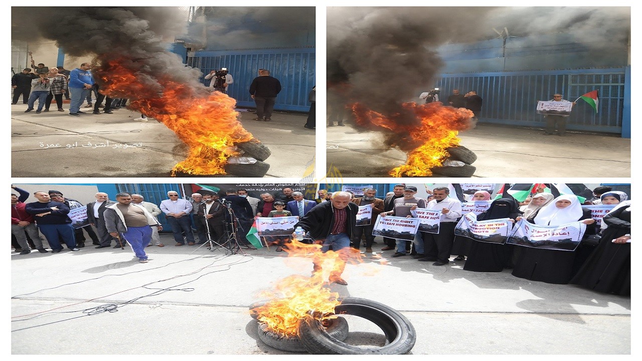 خاص بالفيديو|| متضررو عدوان 2014 يعتصمون أمام مقر «أونروا» في غزة