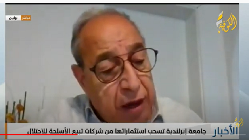 وأضاف في مقابلة على قناة «الكوفية»، أن "حركة BDS نجحت في تشجيع الكلية على سحب استثماراتها ن الشركات التي تبيع الأسلحة أو التقنيات الأمنية للاحتلال الإسرائيلي".