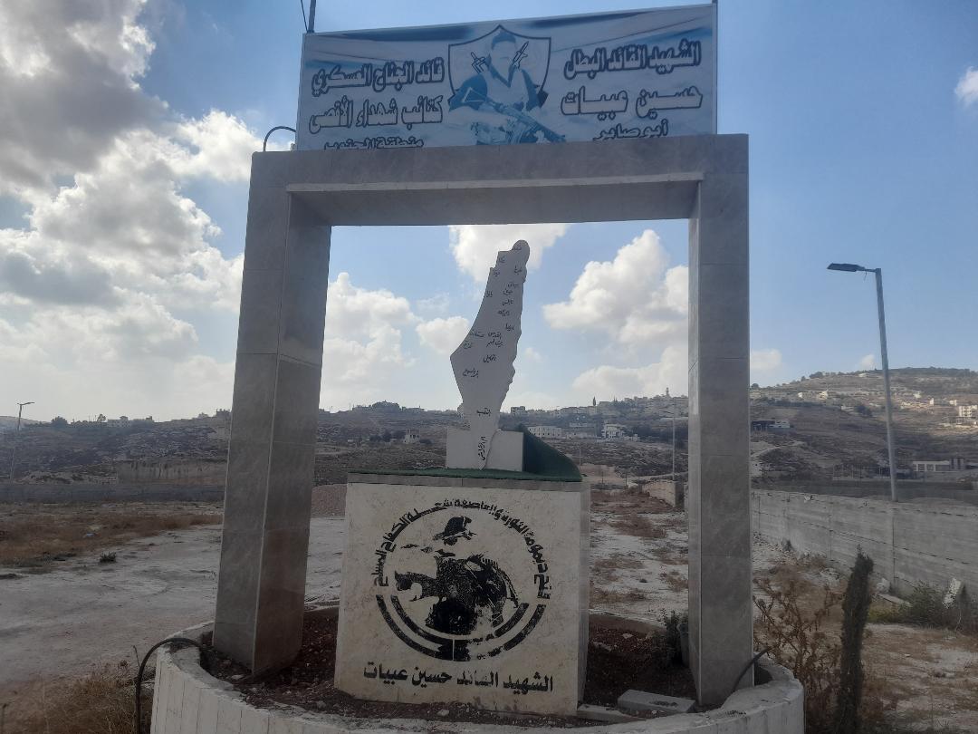 هناك، وسط مقبرة "الشهيد حسين عبيّات" في هندازة وضعت مركبة من نوع ميتسوبيشي التي قصف بداخلها حسين، كصرح تذكاري على ارتفاع أكثر من 6 امتار، أسفلها زين الصرح بخارطة فلسطين كاملة وصورة الشهيد.
