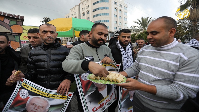 الكوفية غزة- احتفل العشرات من المواطنين بحرية الأسير المحرر القائد كريم يونس في ساحة الجندي المجهول وسط مدينة غزة. ووزع مواطنون الحلوى بهذه المناسبة التي يصفها الفلسطينيون بال"يوم التاريخي".