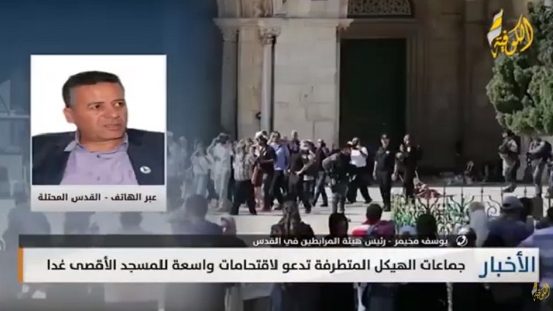 الكوفية الكوفية: حذر رئيس هيئة المرابطين في القدس يوسف مخيمر من دعوات جماعات استيطانية متطرفة إلى أوسع اقتحام للمسجد الأقصى يوم غدٍ، وقال بأن "هذه الدعوات المحمومة التي تنطلق من عصابات المستوطنين، لا سيما الناشطة في اقتحام الأقصى وتقسيمه مكانيا وزمانيا، تسعى إلى تغيير الطابع التاريخي والجغرافي لمدينة القدس، بدعم من وزراء حكومة الاحتلال اليمينة مثل المتطرف إيتمار بن غفير.