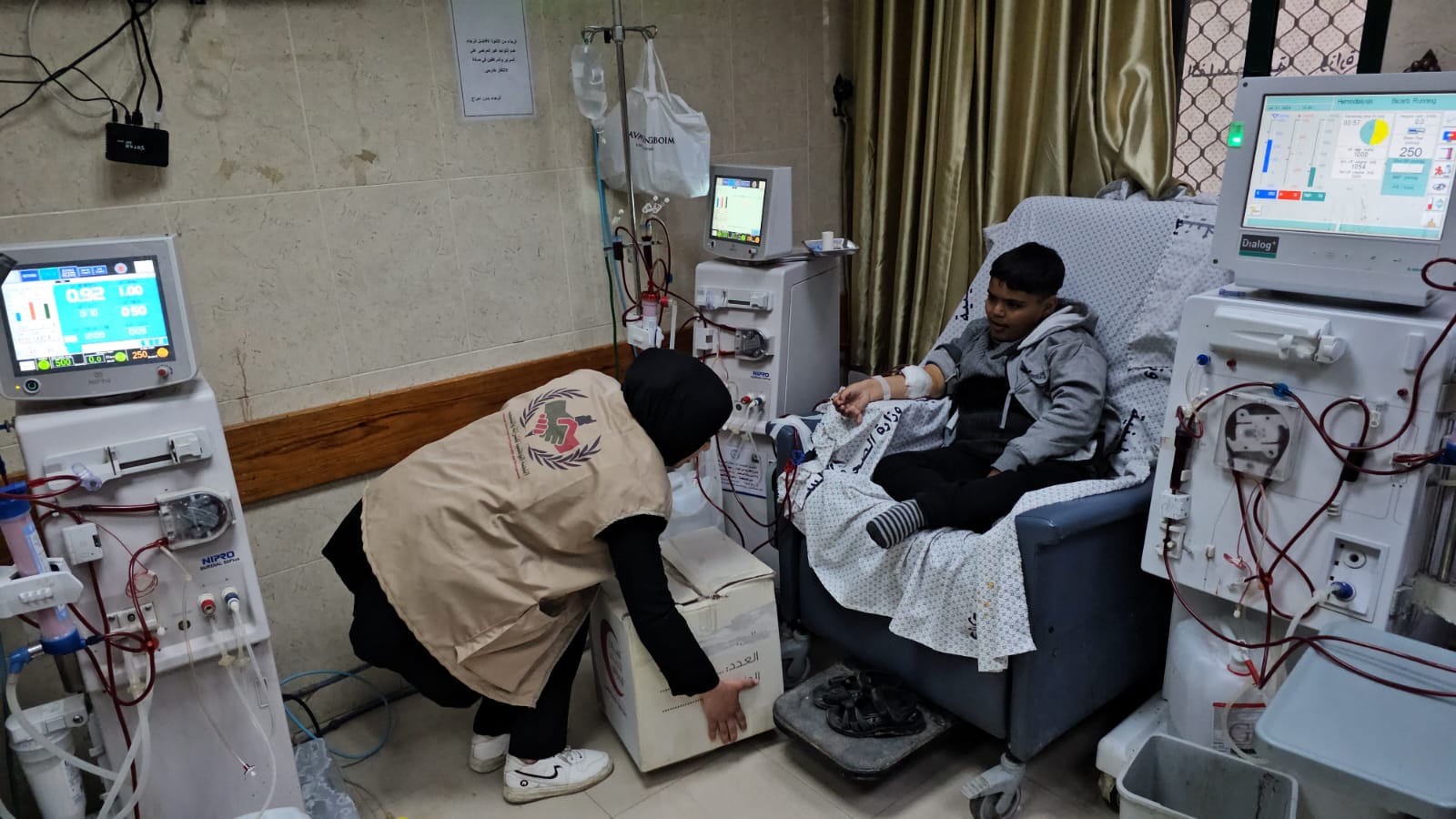 الكوفية غزة: تفقد متطوعو الهلال الأحمر الإماراتي، واللجنة الوطنية للشراكة والتنمية بالمحافظة الوسطى، مرضى الكلى في مستشفى شهداء الاقصى في مدينة دير البلح.