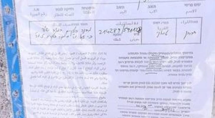 وأفادت مصادر محلية باقتحام قوات الاحتلال القرية، وتسليم المواطن رامي صبري إخطارين بوقف العمل في مسكنين قيد الإنشاء، بحجة البناء دون ترخيص.