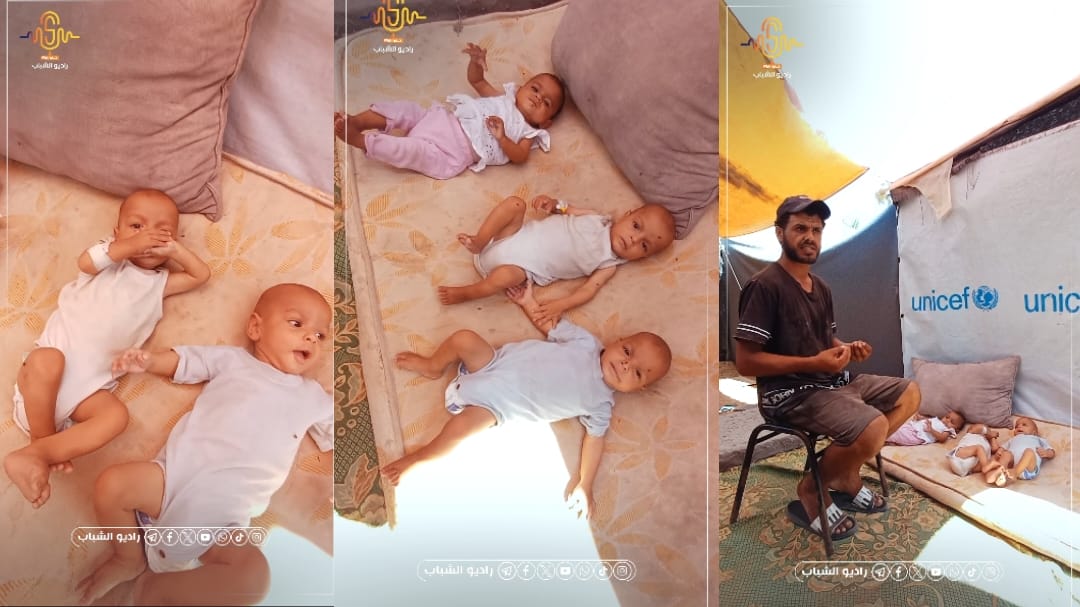 بالفيديو// ثلاثة توائم أطفال يعانون من سوء التغذية بغزة